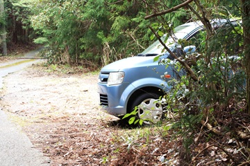 林道に出る。 |
