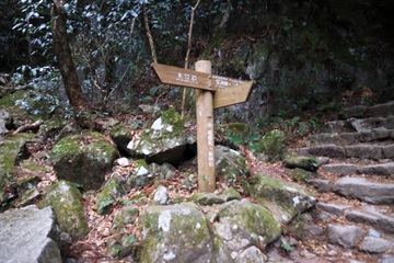 分岐着。 林道よりうさぎ道へ。 河を2ヶ所渡り3合目への道を登って行く。 |
