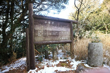 中宮跡着。 少し下り。 再び、急な登山道を行く。 |