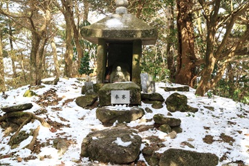 11:59 宝満山着。 三郡山へ向かう。 登山道が雪道になる。 雪が固められた登山道の為滑る。 要注意である。 |