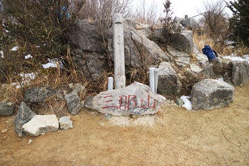 佛頂山着。 写真を撮り、下って行く。 雪が固められた登山道を注意して行く。 |